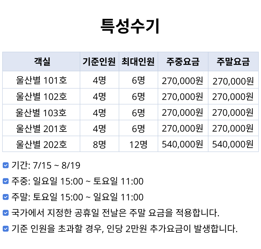울산별펜션 101호 / 102호 / 103호 (온돌방)